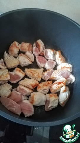 В хорошо нагретом сотейнике на смальце или растительном масле обжариваем грудку пару минут до лёгкой золотистости.