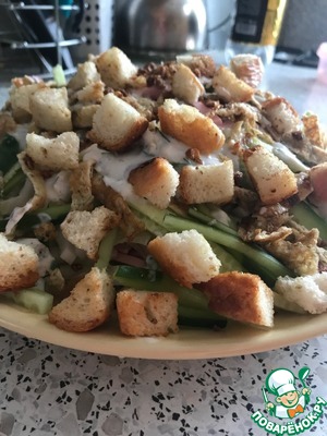Собираем наш салатик горкой, предварительно разделив ингридиенты на 2/3 и 1/3.