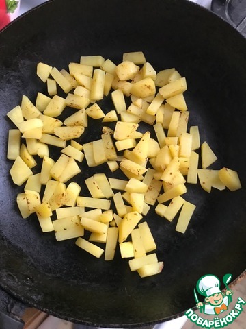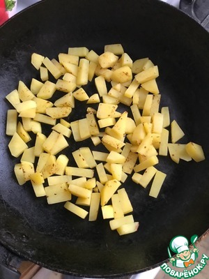 На сухой сковороде обжариваем картофель (естественно сырой)