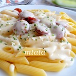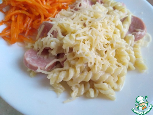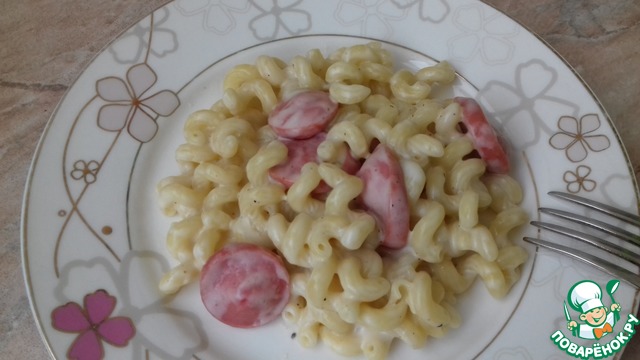 Рецепт «Макароны с сосисками в бархатном соусе»: