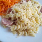 Единственное, я взяла больше сливок. На 2 полноценные порции - 2/3 стакана. Сначала показалось очень много, пыталась выпарить побольше, но когда положила макароны и перемешала - все мгновенно распределилось и стало понятно, что можно было и целый влить без ущерба.