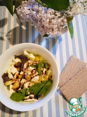 - Сыр адыгейский (Использовала творожный сыр с пажитником, подойдёт моцарелла и дор Блю: с каждым сыром особенное сочетание, но в любом случае вкусно.) — 100 г
