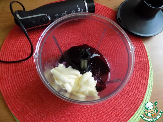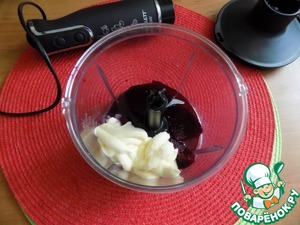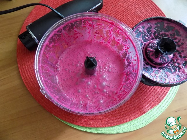 Пробиваем. Если у кого нет измельчителя или блендера, можно свёклу натереть на мелкой тёрке.