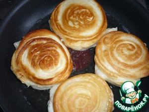 Хорошо нагреваем сковороду и наливаем много растительного масла. Когда масло хорошо разогреется огонь сделать меньше и из кулинарного мешка выдавить спиралью тесто.