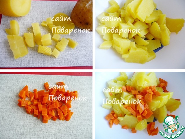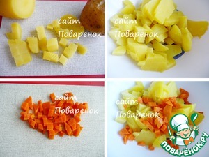 Очистить овощи и нарезать небольшими кубиками. -