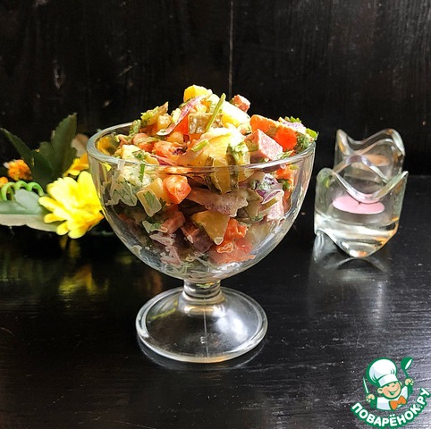 Заправить салат соусом, перемешать.