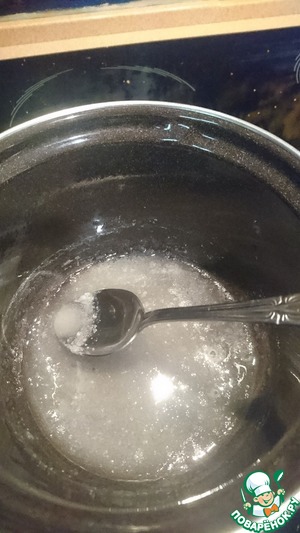 20 г. воды с 80 г. сахара довести до кипения, убавить огонь, уварить до тонкой нитки, выключить.
