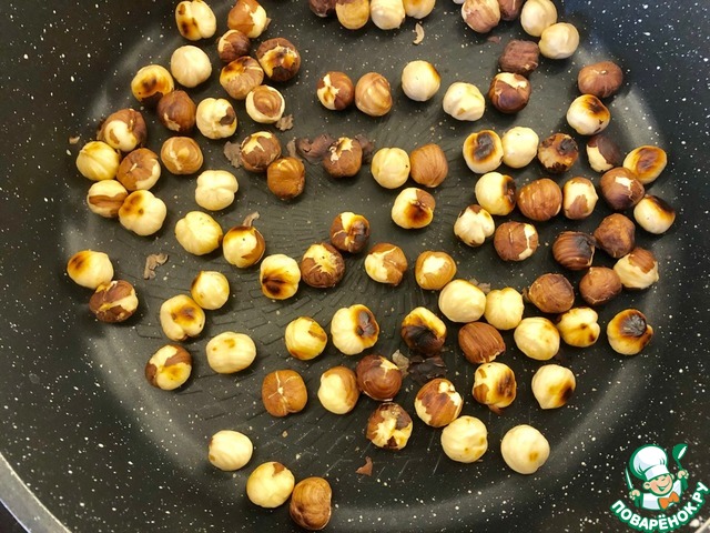 Прокалить орех на сухой раскаленной сковороде. Затем крупно порубила ножом. -