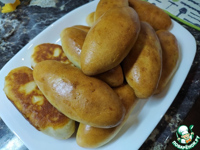 Но нет, тесто сладенькое, вкусное, мягкое) работать приятно с ним, пирожки румяные, пышные и быстро пропекаются. Самые главные судьи - мои сынулики, младший сразу стрескал штуки три с печенью, а потом ещё с картохой навернул, старший тоже оценил, но сказал, что жаренные вкуснее. Но они надоели, если честно. Жду мужа с работы
