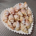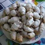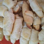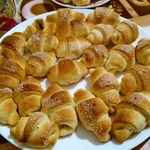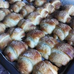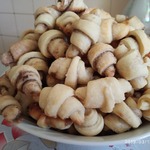 С такого количества ингредиентов у меня получается примерно 64 маленьких рогалика. Рогалики ничем не смазываем. Ставим в разогретую духовку до 180 градусов примерно 15-20 минут.
