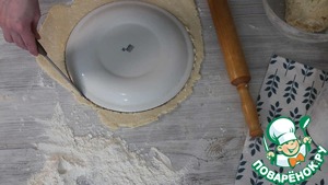 Раскатываем большой круг, толщиной примерно 3-4 мм.