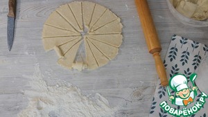Для того чтоб рогалики были красивыми, прикладываем тарелку и вырезаем круг.