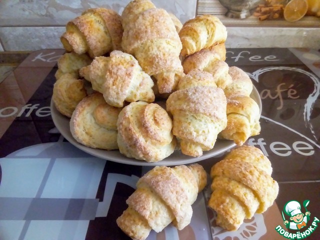 Сегодня предлагаю испечь творожные рогалики. Они мягкие, в меру сладкие. Их любят даже те, кто обычно не ест творог. Большая часть рогаликов съедается, еще до того, как остыли. Можно сделать рогалики с любой начинкой или посыпать сахаром. В любом случае будет вкусно.