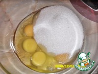 В чашку разбить яйца, всыпать сахaр, размешать, в рецепте сказано, что можно даже без миксера. |