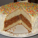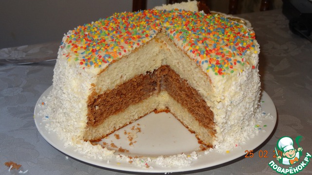Вышел он очень большим и высоким ,промазала просто сгущенкой