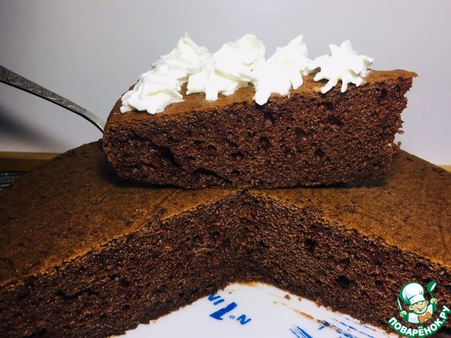Пирог получается очень вкусным, корж замечательно подходит для шоколадных тортов, никогда не подведeт - ТАК написано автором Анной с джазкука, и я в этом сегодня убедилась. Высокий, без заморочек, пирог. Особенно хорош для тех, кто не любит возиться с тестом, или если времени в обрез. Больше времени уходит на выпекание, чем на приготовление. )))