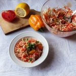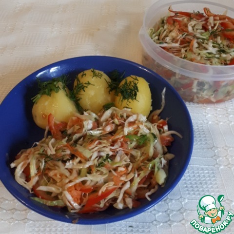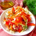 Если вам уже надоела квашеная капуста, предлагаю приготовить легкий овощной салат из свежей капусты с интересным вкусом. Хрустящий, с небольшой остринкой чеснока, кислинкой помидора и лимона. Замечательное дополнение к мясным или рыбным блюдам, да и сам по себе хорош!