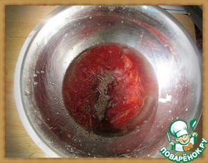 В тертые помидоры добавляем соль, перец, растительное масло, лимонный сок и цедру, перемешиваем
