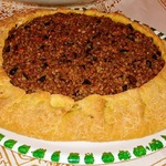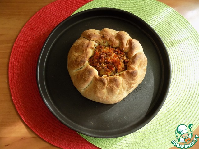 В центр выложила начинку, оставляя края ~4 см. Начинка у меня ушла не вся, осталось в сотейнике.