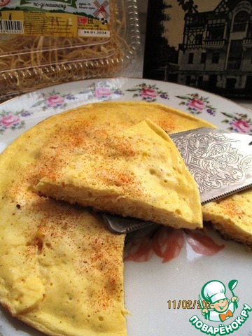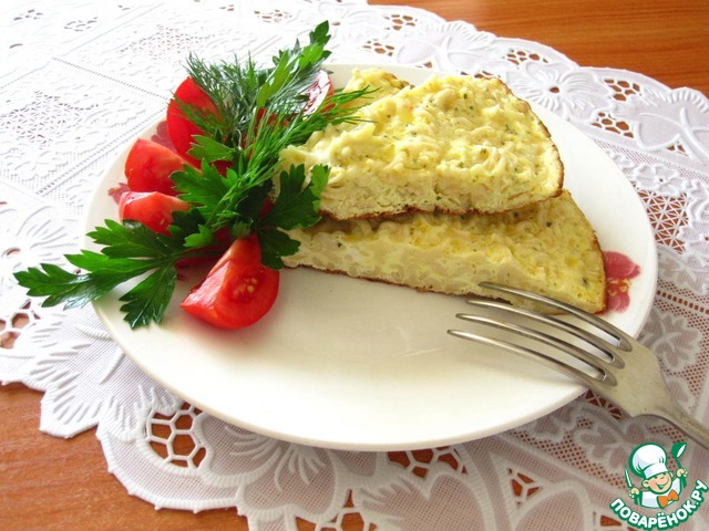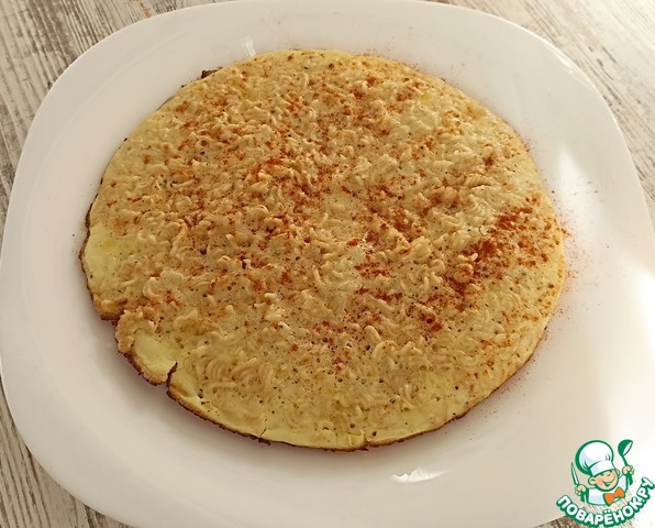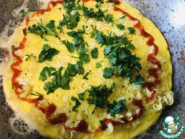 Добрый день уважаемые поварята!! Я к Вам с рецептом обалденно вкусного омлета! Набор продуктов самый простой и банальный, а на выходе получается воздушное, нежное блюдо!! Этот рецепт в моей копилочке более 10 лет. Нашла я его в газете "Наша Кухня" будучи еще школьницей. Опробовала сразу же после прочтения. Вкусно было очень!! И вот я его готовила всю неделю подряд и кормила им всю семью))) Многие скажут, что лапша быстрого приготовления вредна для здоровья, не могу с этим не согласиться... Но именно для этого омлета всегда держу пару пачек в закромах... даже мой муж.. не особый любитель лапши, фаст-фуда, чипсов... нет—нет да и спросит украдкой: "Может на ужин приготовим тот твой омлет с макаронами? В любом случае настоятельно рекомендую приготовить этот омлет хотя бы раз...