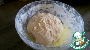 Тесто получается липкое. Долго вымешивать не надо. Для удобства можно смазать руки растит. маслом. Дать тесту отдохнуть 30 минут.