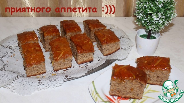 Рецепт «Постное ореховое пирожное с апельсиновым джемом»: