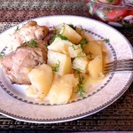 В кастрюлю с толстыми стенками кладем столовую ложку сливочного масла (можно растительного), укладываем курочку, лавровый лист, засыпаем луком, сверху картофель. Плотно закрываем крышкой, чтобы не выходил пар, ставим на самый маленький огонь и забываем на 1,5 часа. Крышку не открывать и не мешать. Через 1,5 часа перемешать, если надо досолить, выключить и дать постоять под крышкой минут 10. Приятного аппетита!!!
