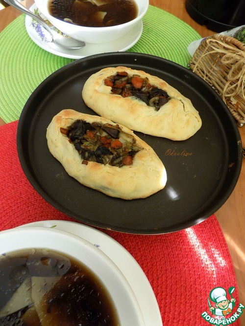 Рецепт «Бездрожжевые лодочки с грибами и капустой»: