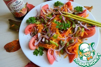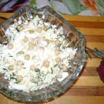 Вкусный, свежий, простой салат. Достаточно нежный и сочный. Угощайтесь!