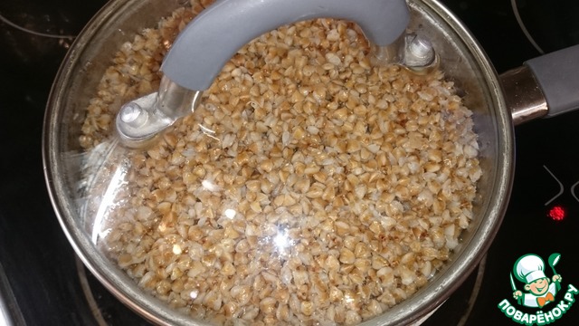 Если у Вас нет готовой гречневой каши, то промываем крупу, заливаем водой и варим до готовности. Не забываем посолить по вкусу.