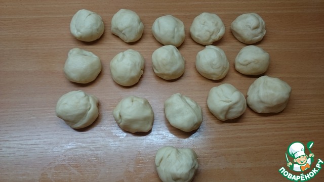 Определяем длину планируемых трубочек. Если будете делать в длину 2х сосисок, то тесто делим на 8 частей. Я делаю в длину одной сосиски, поэтому делю на 16 частей. -