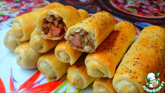Ингредиенты для «Трубочки с сосиской и гречкой»: