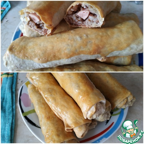 Готовим трубочки в духовке 40 минут, до золотистой корочки.
