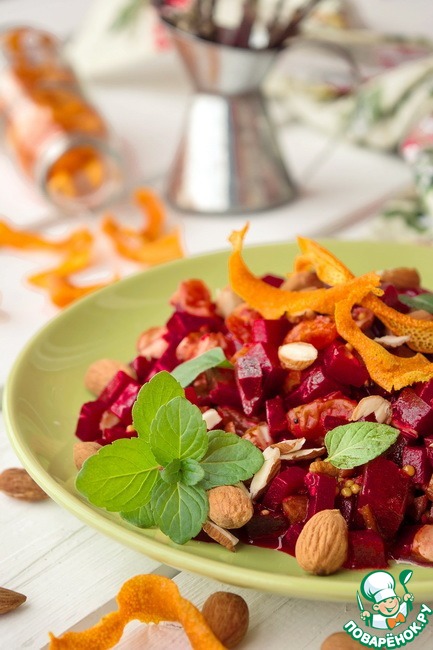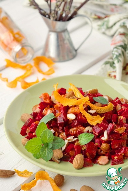 Рецепт «Свекольный салат с курагой и миндалём»: