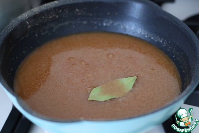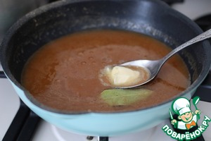 Добавить 2 стакана куриного бульона, добавить лавровый лист. Загустить соус, помешивая, до нужной консистенции.
