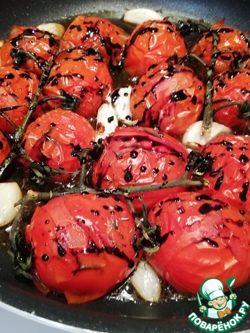 Но это ОЧЕНЬ вкусно! А какие ароматы витают при готовке, это нечто!!!! Замечательная, быстрая, ароматная, изысканная закуска! У меня не черри, а томаты банч, поэтому готовила на 10мин. дольше. Часть масла, соуса и сока из помидора стекают в форму и такое наслаждение, отламывать кусочек и макать в образовавшийся соус! Класс!