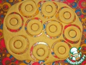 Вырезать с помощью большой и маленькой формочек кружочки.