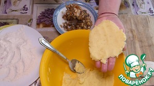 На одну ладонь кладем 1-1,5 ст. л. теста и равномерно распределяем по ладошке. -