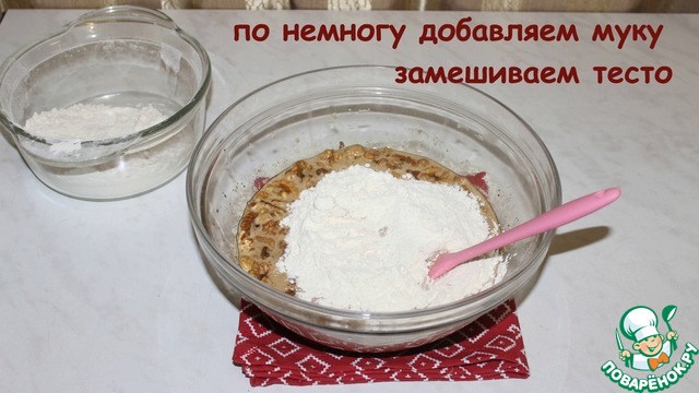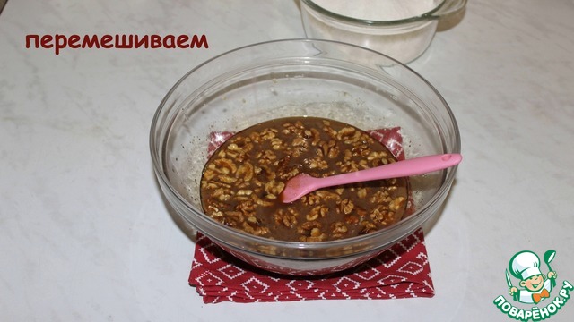 Добавляем орехи, соду, соль и хорошо перемешиваем.