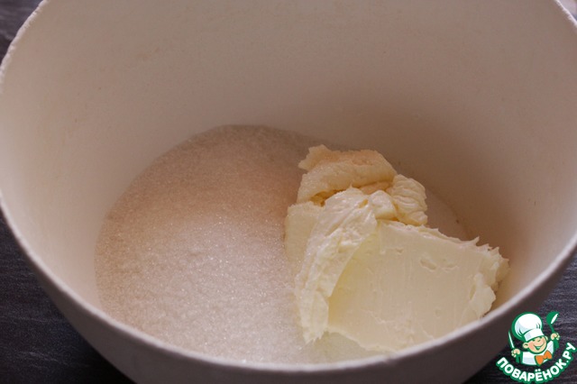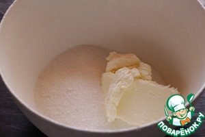 Размягчённое масло взбить с сахаром до пышной светлой массы.