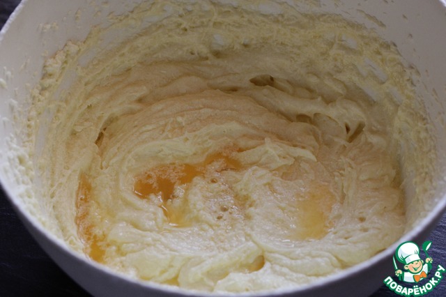 По одному ввести яйца в масляную смесь, каждый раз хорошо взбивая.