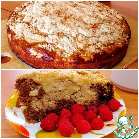 [+5]И половину муки заменила на цельнозерновую, что пирогу совершенно не навредило. И ещё шройзель сверху, очень кстати пришелся.