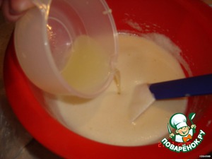 белки взбить отдельно и смешать с желтками с добавлением лимонного сока