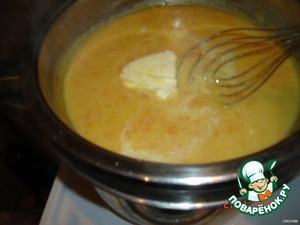 • пока курд остывает, залить желатин апельсиновым соком для разбухания