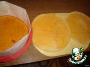 коржи пропитать сиропом (я пропитала ликёром, разведённым с водой) -