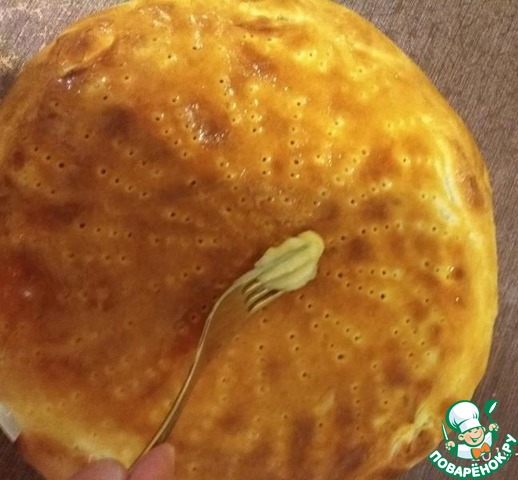 Формируем пирог. Прокалываем верх пирога вилкой. -