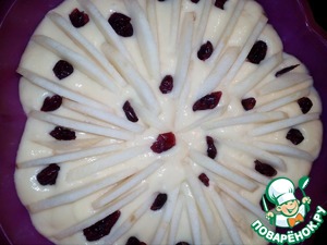 Тесто выложим в форму, яблочки раскладываем стоя, утапливая в тесто, изюм (клюкву, чернослив, курагу, орешки, цукаты) разбросаем хаотично, как лягут:)))!!!