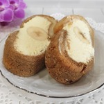 11. Затем аккуратно сворачиваем основу в рулет (помогая пищевой пленкой, которой вы застелили доску), банан должен оказаться в центре,