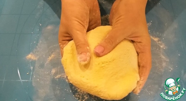 Стол припылите мукой. Всего для замеса теста вам понадобится еще 3 ст. л. муки. Вымесите тесто, оно не должно липнуть к рукам.