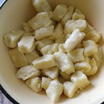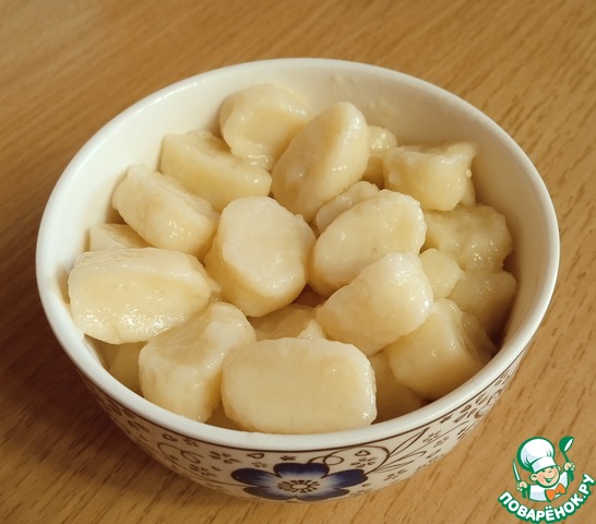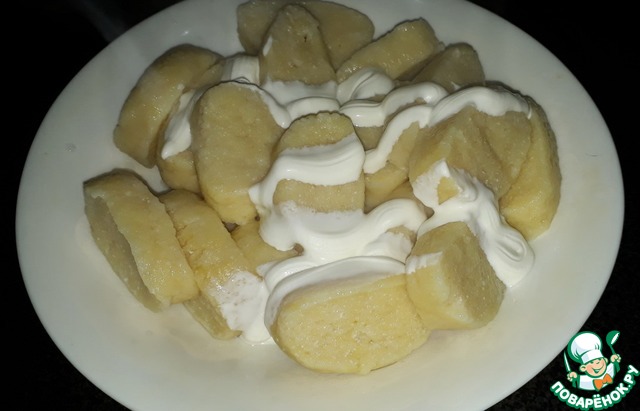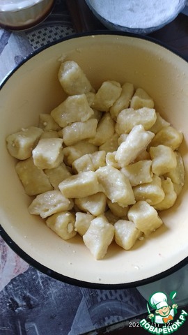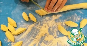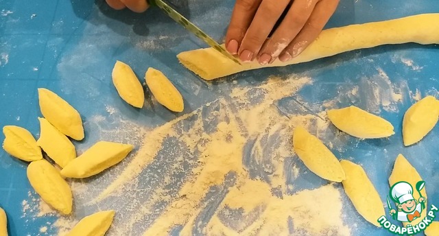 Сформируйте колбаску толщиной 2-3 см и нарежьте небольшими кусочками.